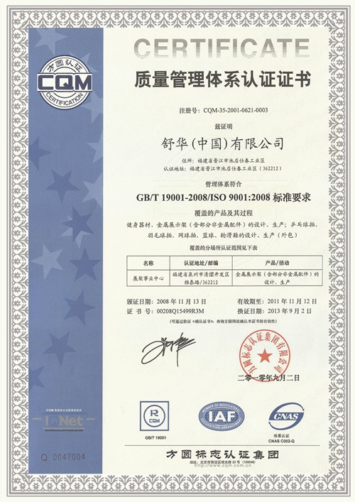 質量管理體系證書質量管理體系證書